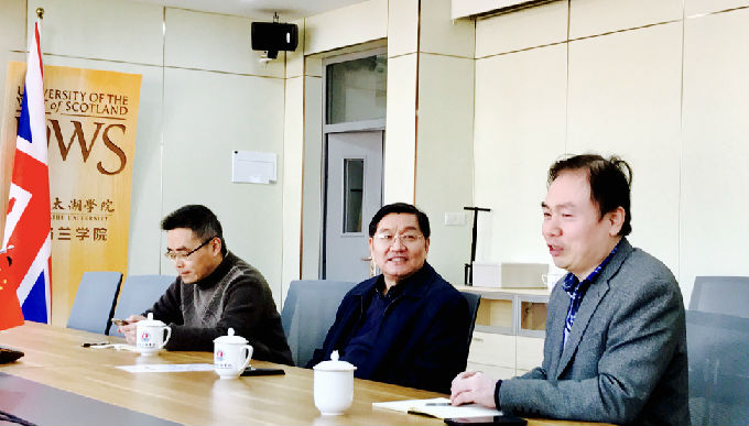 12月9日上午,图书馆馆长刘文社走访苏格兰学院,向苏格兰学院院长蒋勇院长颁赠了捐书荣誉证书,感谢蒋勇院长为我馆捐赠了近1500本外文期刊与书籍,并与苏格兰学院部分老师进行数据资源上的交流。蒋勇院长于2019年6月,向我馆捐赠由蒋勇院长亲自主编的外文期刊和书籍了近1500本,捐赠数量种类之多,覆盖专业学科之广,为我馆历史上首次。蒋院长对刘文社馆长的到来表示感谢,感谢图书馆对成立苏格兰学院上的帮助和支持,同时也对日后苏格兰学院在数字资源建设和支撑上表达了需求,刘文社馆长表示会与苏格兰学院深入合作,为苏格兰学院数据资源的建设保驾护航。苏格兰学院副院长姚鹰出席座谈会。