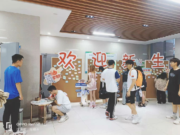 一群群新生来到图书馆在一楼大厅,拿起精美的便签纸,在迎新留言板上写下他们的青春与理想,活动吸引了许多新生挥笔寄语未来,为自己树立了更为远大的目标。一些因疫情而错过的高年级同学们也被活动吸引,积极参与其中。