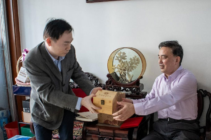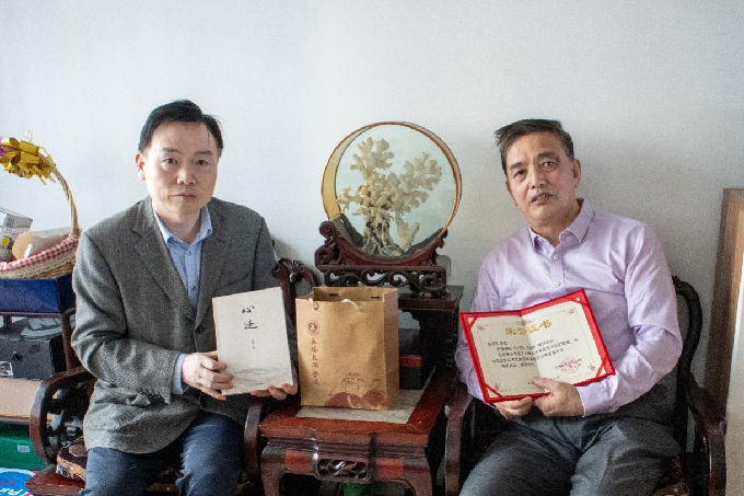 2023年11月6日下午,原无锡市司法局副局长、无锡市律师协会理事长、江南大学法政学院兼职教授蒋颂平先生向无锡太湖学院图书馆捐赠了200本自己的著作《心迹》。由于蒋先生行走不便,图书馆一行亲自到蒋先生家中接受了这份珍贵的捐赠,并向他颁发了荣誉证书。