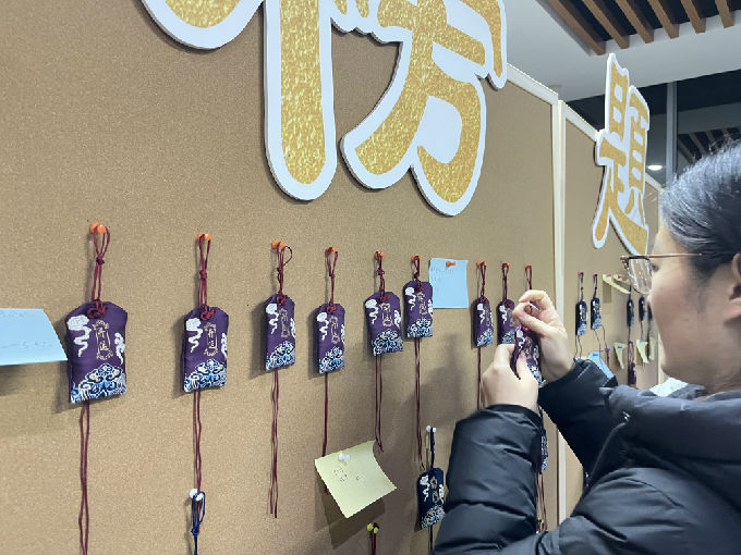 这份福袋由图书馆工作人员精心制作,希望他们能够在备考的道路上坚持下去,最终实现自己梦想,学生们也将自己的祝福语写在便利贴上,贴在图书馆内的考研金榜题名墙上,让每一个人都能感受到这份浓浓的关怀。