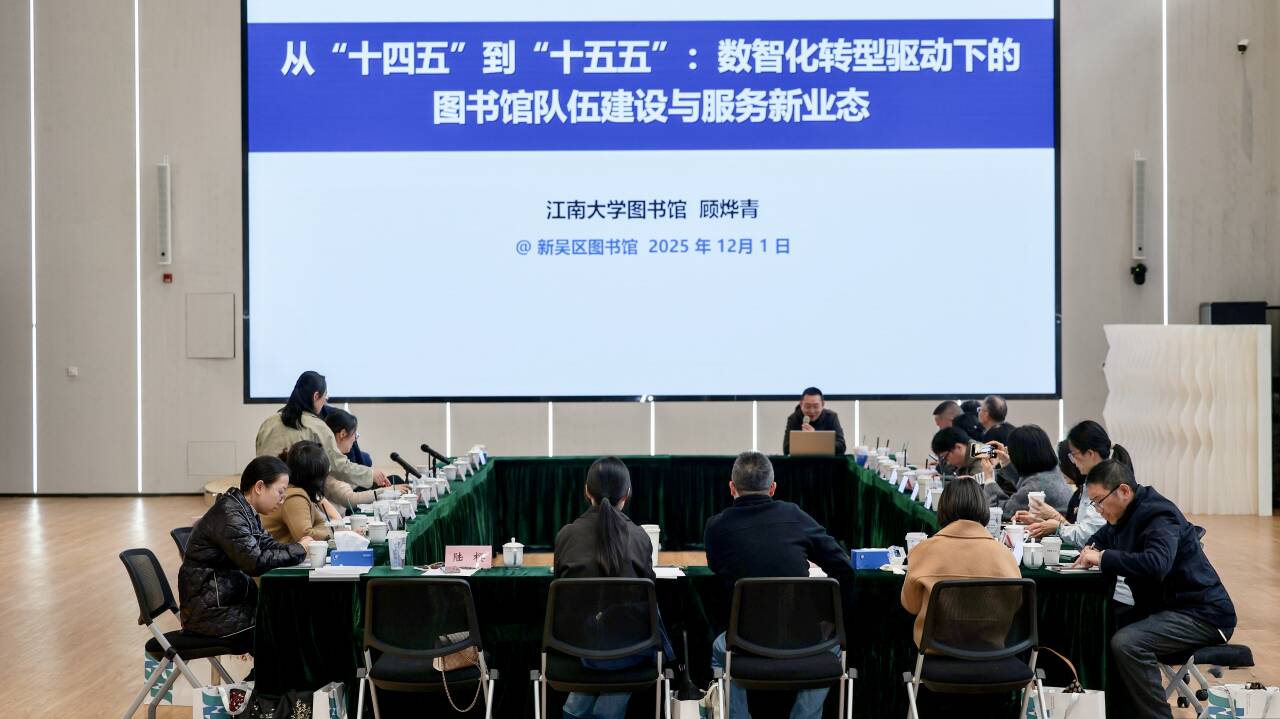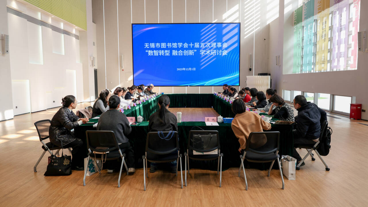 2025年12月1日,无锡市图书馆学会十届五次理事会暨“数智转型,融合创新”学术研讨会在新吴区图书馆举行。我校图书馆馆长刘文社应邀参会并作交流发言。